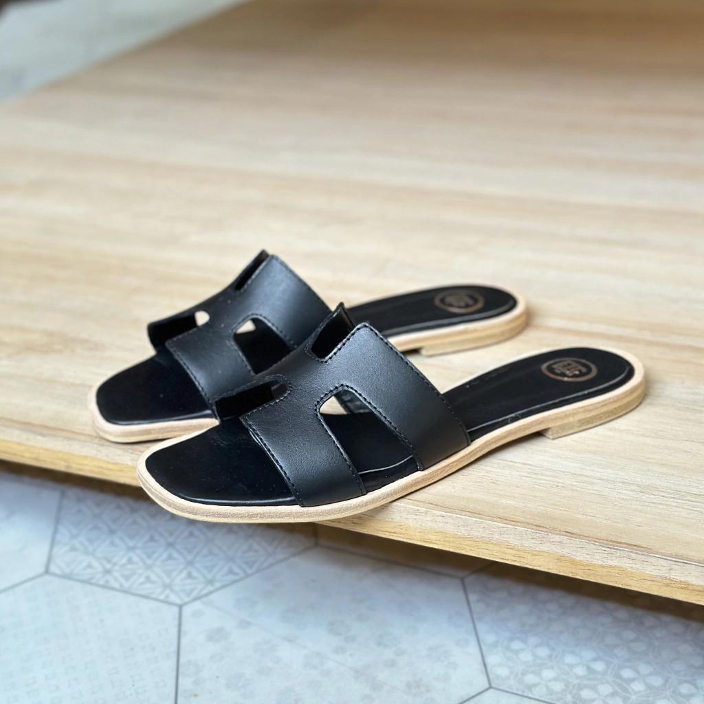 Este artículo es de cuero vacuno como todos nuestros productos. En este caso cuero liso negro. Chata de 0,80 mm de taco.