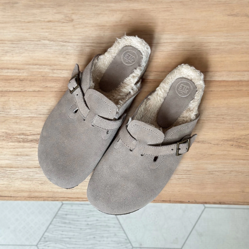 Este artículo es de cuero vacuno como todos nuestros productos. Confeccionado en gamuza de cuero visón. Forrado en corderito natural.